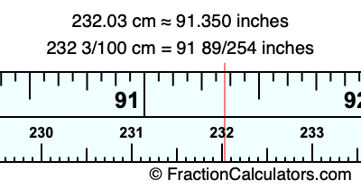 232 3/100 cm = 91 89/254 inches