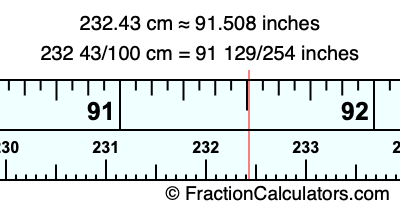 232 43/100 cm = 91 129/254 inches