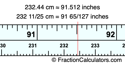 232 11/25 cm = 91 65/127 inches
