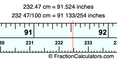As promised above, we also have the answer to 232.47 cm in inches in decimal form. Although the fractional answer above is exact, the decimal answer may be rounded if necessary: