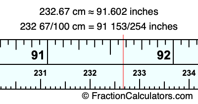 As promised above, we also have the answer to 232.67 cm in inches in decimal form. Although the fractional answer above is exact, the decimal answer may be rounded if necessary: