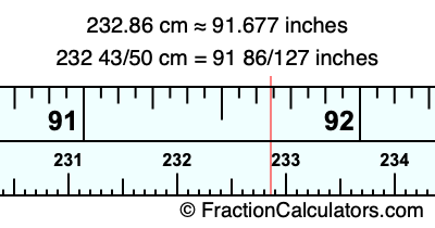 As promised above, we also have the answer to 232.86 cm in inches in decimal form. Although the fractional answer above is exact, the decimal answer may be rounded if necessary: