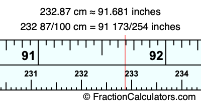 As promised above, we also have the answer to 232.87 cm in inches in decimal form. Although the fractional answer above is exact, the decimal answer may be rounded if necessary:
