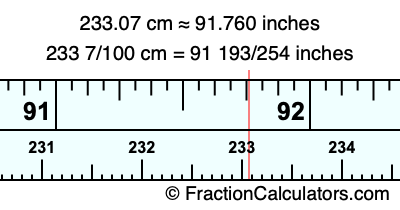 Here is how to convert 233.07 cm to inches. We will give you the fractional answer, the decimal answer, and illustrate the answer on our tape measure.