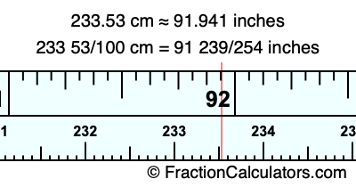 As promised above, we also have the answer to 233.53 cm in inches in decimal form. Although the fractional answer above is exact, the decimal answer may be rounded if necessary: