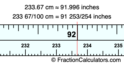 As promised above, we also have the answer to 233.67 cm in inches in decimal form. Although the fractional answer above is exact, the decimal answer may be rounded if necessary:
