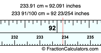 233 91/100 cm = 92 23/254 inches