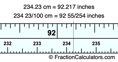 234 23/100 cm = 92 55/254 inches