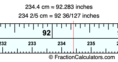 234 2/5 cm = 92 36/127 inches