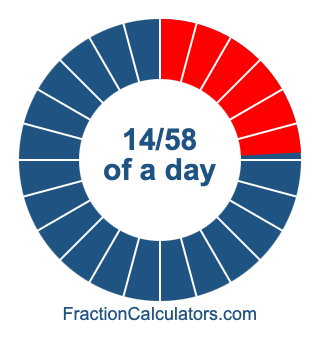 Here we will show you how to calculate exactly how many hours, minutes, and seconds there are in 14/58 of a day. We will also illustrate what 14/58 of a day looks like on a pie chart.