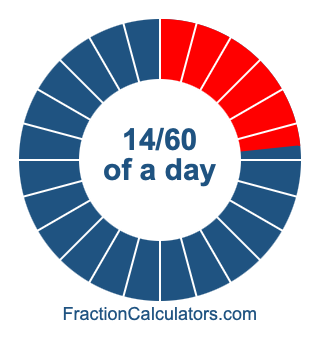 Here we will show you how to calculate exactly how many hours, minutes, and seconds there are in 14/60 of a day. We will also illustrate what 14/60 of a day looks like on a pie chart.
