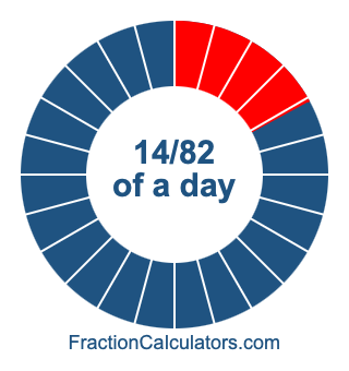 Here we will show you how to calculate exactly how many hours, minutes, and seconds there are in 14/82 of a day. We will also illustrate what 14/82 of a day looks like on a pie chart.