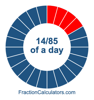 Here we will show you how to calculate exactly how many hours, minutes, and seconds there are in 14/85 of a day. We will also illustrate what 14/85 of a day looks like on a pie chart.