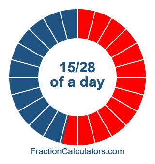 Here we will show you how to calculate exactly how many hours, minutes, and seconds there are in 15/28 of a day. We will also illustrate what 15/28 of a day looks like on a pie chart.