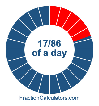 Here we will show you how to calculate exactly how many hours, minutes, and seconds there are in 17/86 of a day. We will also illustrate what 17/86 of a day looks like on a pie chart.