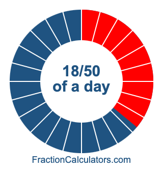 Here we will show you how to calculate exactly how many hours, minutes, and seconds there are in 18/50 of a day. We will also illustrate what 18/50 of a day looks like on a pie chart.