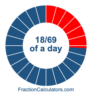 Here we will show you how to calculate exactly how many hours, minutes, and seconds there are in 18/69 of a day. We will also illustrate what 18/69 of a day looks like on a pie chart.