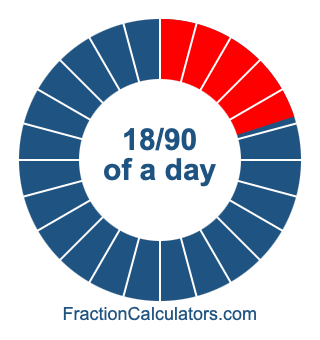 Here we will show you how to calculate exactly how many hours, minutes, and seconds there are in 18/90 of a day. We will also illustrate what 18/90 of a day looks like on a pie chart.
