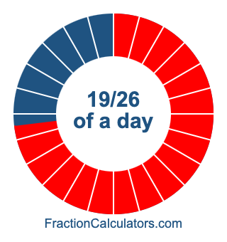 Here we will show you how to calculate exactly how many hours, minutes, and seconds there are in 19/26 of a day. We will also illustrate what 19/26 of a day looks like on a pie chart.