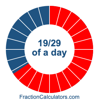 Here we will show you how to calculate exactly how many hours, minutes, and seconds there are in 19/29 of a day. We will also illustrate what 19/29 of a day looks like on a pie chart.