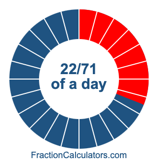 Here we will show you how to calculate exactly how many hours, minutes, and seconds there are in 22/71 of a day. We will also illustrate what 22/71 of a day looks like on a pie chart.
