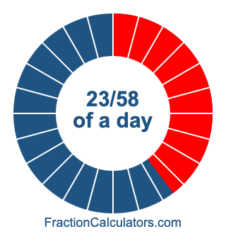 Here we will show you how to calculate exactly how many hours, minutes, and seconds there are in 23/58 of a day. We will also illustrate what 23/58 of a day looks like on a pie chart.