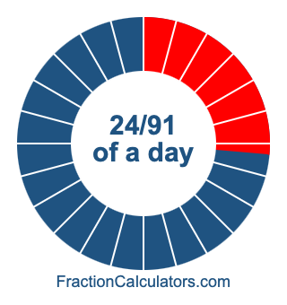 Here we will show you how to calculate exactly how many hours, minutes, and seconds there are in 24/91 of a day. We will also illustrate what 24/91 of a day looks like on a pie chart.