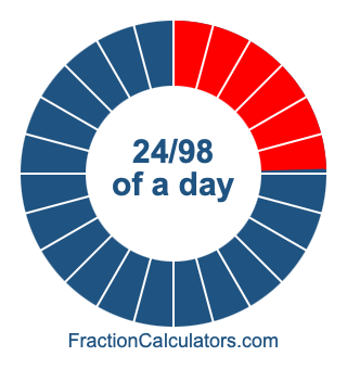 Here we will show you how to calculate exactly how many hours, minutes, and seconds there are in 24/98 of a day. We will also illustrate what 24/98 of a day looks like on a pie chart.