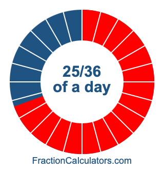 Here we will show you how to calculate exactly how many hours, minutes, and seconds there are in 25/36 of a day. We will also illustrate what 25/36 of a day looks like on a pie chart.