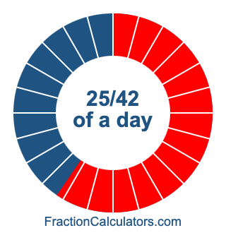 Here we will show you how to calculate exactly how many hours, minutes, and seconds there are in 25/42 of a day. We will also illustrate what 25/42 of a day looks like on a pie chart.