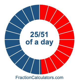Here we will show you how to calculate exactly how many hours, minutes, and seconds there are in 25/51 of a day. We will also illustrate what 25/51 of a day looks like on a pie chart.