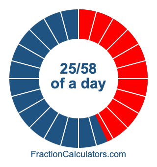 Here we will show you how to calculate exactly how many hours, minutes, and seconds there are in 25/58 of a day. We will also illustrate what 25/58 of a day looks like on a pie chart.
