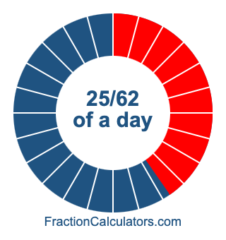 Here we will show you how to calculate exactly how many hours, minutes, and seconds there are in 25/62 of a day. We will also illustrate what 25/62 of a day looks like on a pie chart.