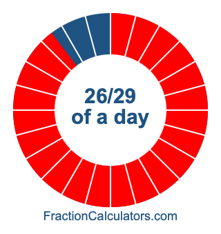 Here we will show you how to calculate exactly how many hours, minutes, and seconds there are in 26/29 of a day. We will also illustrate what 26/29 of a day looks like on a pie chart.