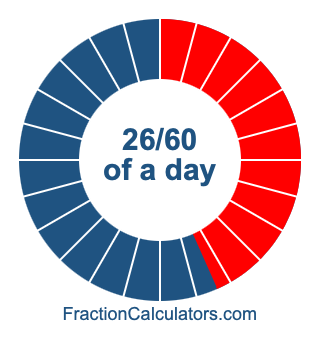 Here we will show you how to calculate exactly how many hours, minutes, and seconds there are in 26/60 of a day. We will also illustrate what 26/60 of a day looks like on a pie chart.