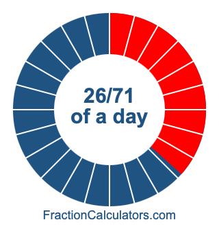 Here we will show you how to calculate exactly how many hours, minutes, and seconds there are in 26/71 of a day. We will also illustrate what 26/71 of a day looks like on a pie chart.