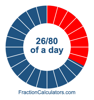Here we will show you how to calculate exactly how many hours, minutes, and seconds there are in 26/80 of a day. We will also illustrate what 26/80 of a day looks like on a pie chart.