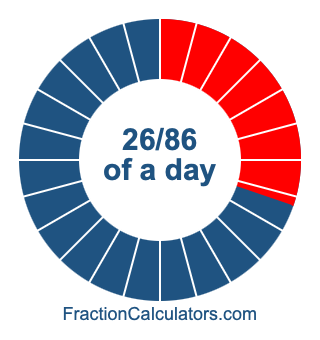 Here we will show you how to calculate exactly how many hours, minutes, and seconds there are in 26/86 of a day. We will also illustrate what 26/86 of a day looks like on a pie chart.