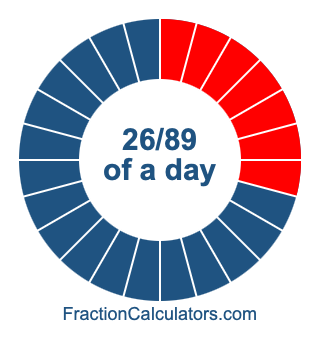 Here we will show you how to calculate exactly how many hours, minutes, and seconds there are in 26/89 of a day. We will also illustrate what 26/89 of a day looks like on a pie chart.