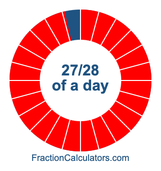 Here we will show you how to calculate exactly how many hours, minutes, and seconds there are in 27/28 of a day. We will also illustrate what 27/28 of a day looks like on a pie chart.