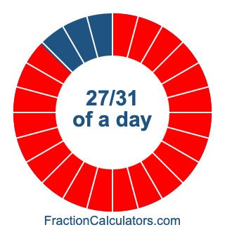 Here we will show you how to calculate exactly how many hours, minutes, and seconds there are in 27/31 of a day. We will also illustrate what 27/31 of a day looks like on a pie chart.