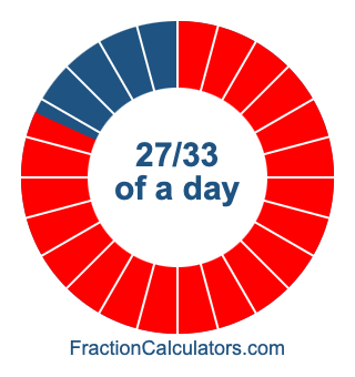 Here we will show you how to calculate exactly how many hours, minutes, and seconds there are in 27/33 of a day. We will also illustrate what 27/33 of a day looks like on a pie chart.