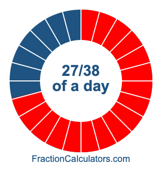 Here we will show you how to calculate exactly how many hours, minutes, and seconds there are in 27/38 of a day. We will also illustrate what 27/38 of a day looks like on a pie chart.