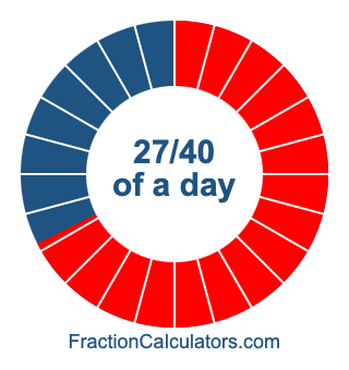 Here we will show you how to calculate exactly how many hours, minutes, and seconds there are in 27/40 of a day. We will also illustrate what 27/40 of a day looks like on a pie chart.