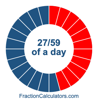 Here we will show you how to calculate exactly how many hours, minutes, and seconds there are in 27/59 of a day. We will also illustrate what 27/59 of a day looks like on a pie chart.