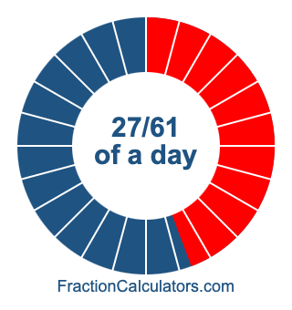 Here we will show you how to calculate exactly how many hours, minutes, and seconds there are in 27/61 of a day. We will also illustrate what 27/61 of a day looks like on a pie chart.