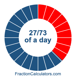 Here we will show you how to calculate exactly how many hours, minutes, and seconds there are in 27/73 of a day. We will also illustrate what 27/73 of a day looks like on a pie chart.