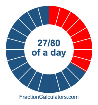 Here we will show you how to calculate exactly how many hours, minutes, and seconds there are in 27/80 of a day. We will also illustrate what 27/80 of a day looks like on a pie chart.