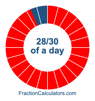 Here we will show you how to calculate exactly how many hours, minutes, and seconds there are in 28/30 of a day. We will also illustrate what 28/30 of a day looks like on a pie chart.