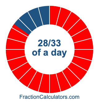 Here we will show you how to calculate exactly how many hours, minutes, and seconds there are in 28/33 of a day. We will also illustrate what 28/33 of a day looks like on a pie chart.